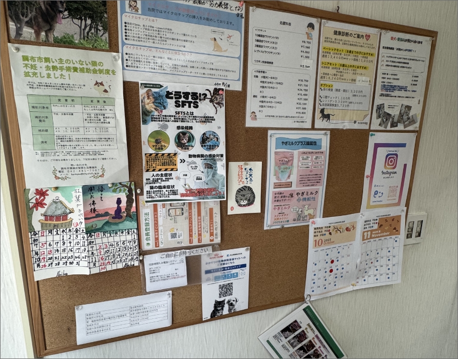 ペットの情報(ワクチン証明書、他院での検査結果、服用中の薬など)お持ちください。