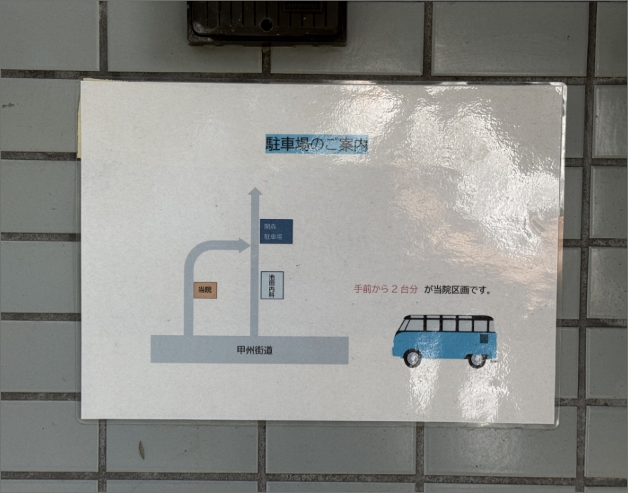 当院の正面に専用駐車スペースがございます。満車の際はスタッフまでお声かけください。駐車場所が分かりにくい場合はお気軽にお電話ください。お車でお越しの際も安心してご来院いただけます。